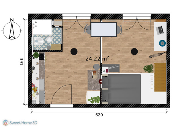 Para probar un ejemplo de esta página, descárgalo haciendo clic en su enlace y ábrelo con Sweet Home 3D.