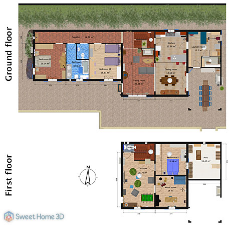 Estos ejemplos de la vida real destacan planos de casas detallados, proyectos creativos de decoración del hogar y diseños de casas completamente amuebladas desarrollados con las herramientas de Sweet Home 3D.