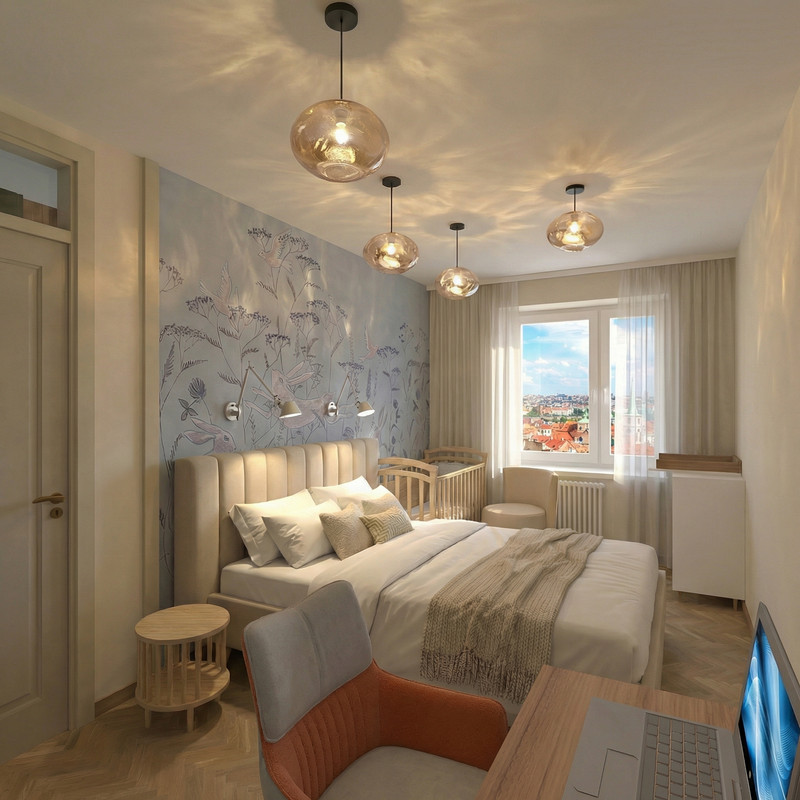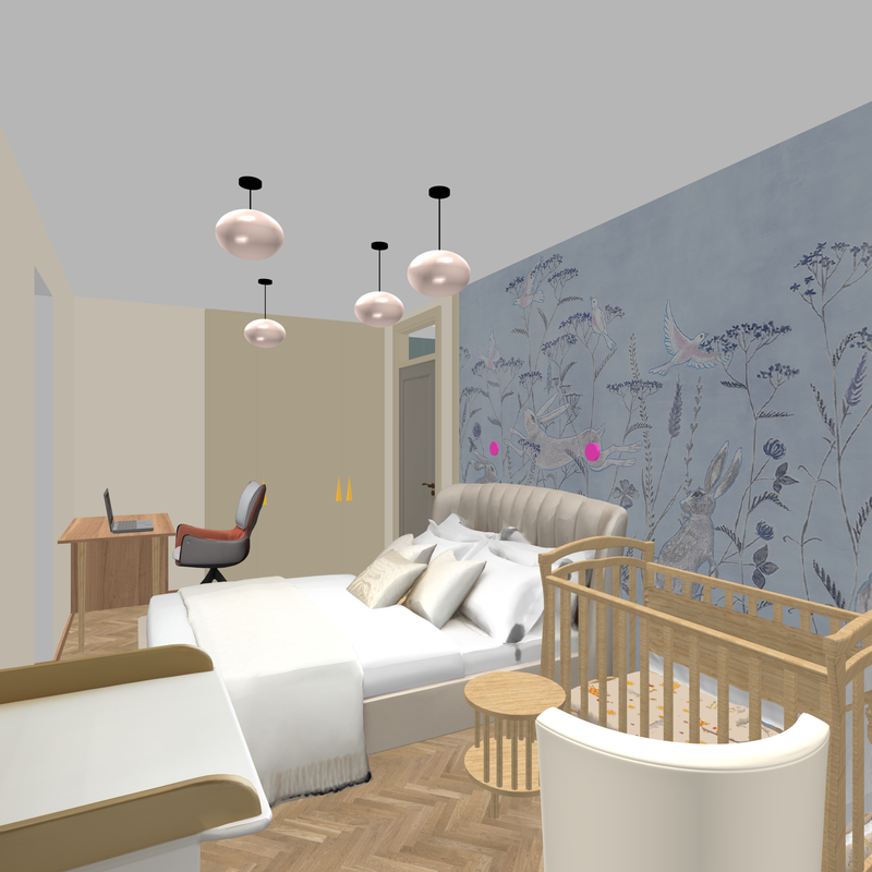 interestingly, with the help of AI, it is possible to make a true reflection in the mirror of something that is not in the frame, but is in reality behind the viewer. To do this, I inserted into the AI task a fragment from an earlier AI render with the desired area of the room to be reflected. In general, it turned out, although of course there are some lies, but almost imperceptibly.