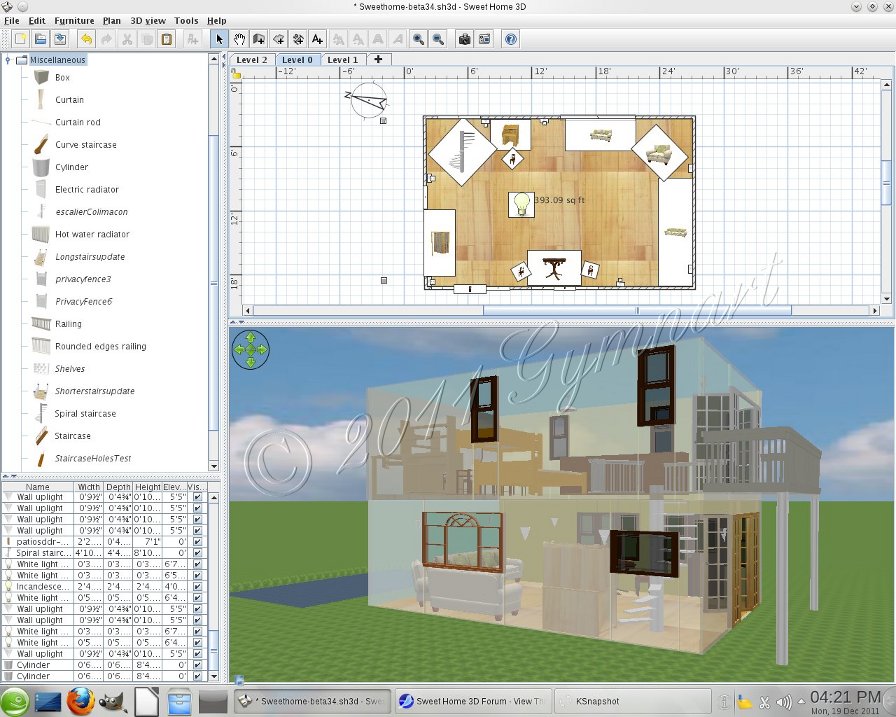 I updated the beta version to generate automatically the bottom part of a floor at upper levels, when no ceiling part was drawn at the lower level. It contains also a few bug fixes reported by a nice team of Swedish students who test Sweet Home 3D at this time. Nice job guys!