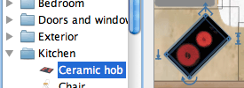 從可搜尋且可擴展的目錄中添加家具到平面圖中,目錄按廚房、客廳、臥室、浴室等類別組織…