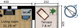 在平面圖中拖曳門窗,即可在牆上插入門窗,然後讓Sweet Home 3D計算牆上的孔洞。
