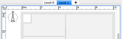如果您的房屋不只一層,您可以透過選擇「平面圖」建立額外的樓層>等級>您可以從選單中新增樓層,或點選房屋多層時出現的「+」標籤。每個樓層都由平面圖頂部顯示的選項卡表示,用於選擇要添加新牆壁、家具和其他物品的樓層。