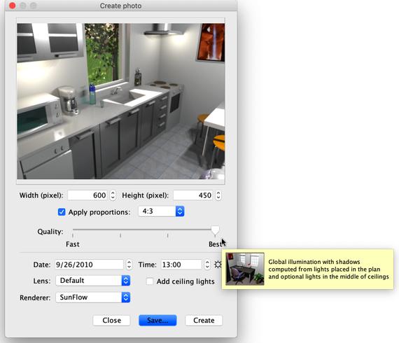 根據您的電腦配置和效能,計算最佳影像品質可能需要很長時間。不過,請注意,在此計算過程中,您仍然可以修改您的家居設定。由於技術原因,一次只能開啟一個「建立照片」面板。