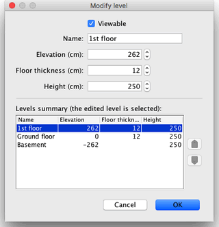 可以透過雙擊對應標籤或選擇「平面圖」來修改各層的預設標高、高度和樓板厚度。>等級>從選單中選擇“修改等級”