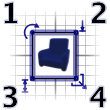 在平面圖中選擇一個部件後,您可以使用出現在所選部件每個角落的四個指示器之一來更改其大小、高度或角度,如圖 9 所示。